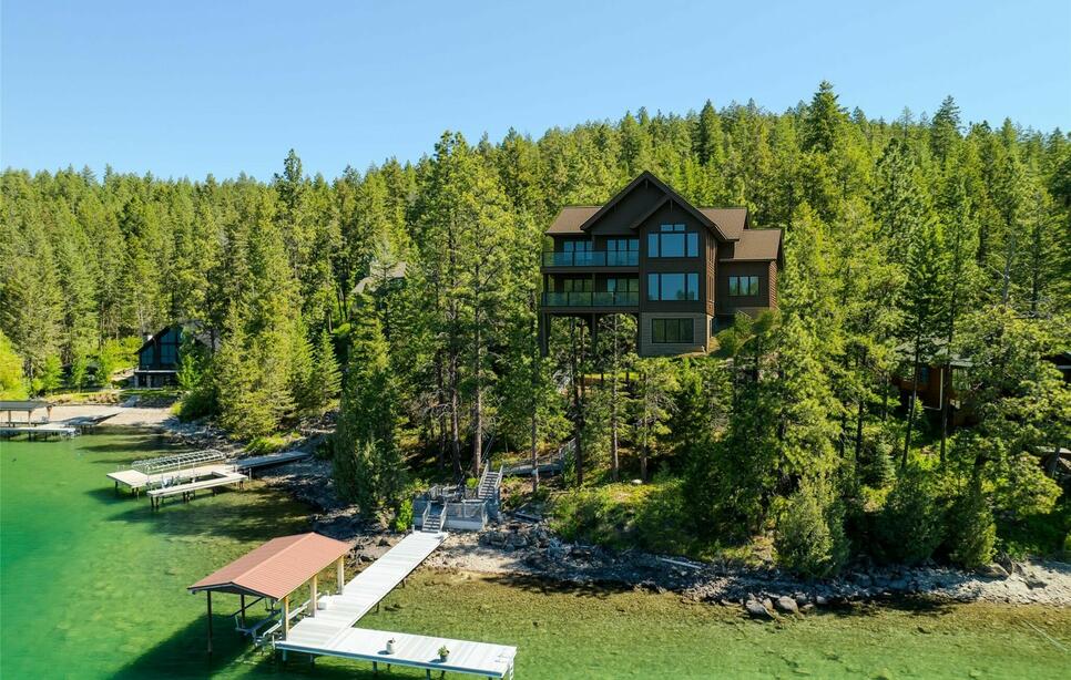 Indulge in the ultimate retreat with this breathtaking custom waterfront home only 2 miles south of Lakeside in the coveted Shelter Bay Estates, where luxury meets nature. Spanning an impressive 4,668 square feet, this exquisite residence boasts 3 bedrooms and 5 bathrooms, all designed with meticulous attention to detail. Revel in 151 feet of pristine Flathead Lake frontage and soak in amazing lake views from one of three expansive decks. This rare gem offers unparalleled privacy and includes high-end amenities such as radiant floor heating, an elevator, a dock with a covered boat lift, multiple garages, a tram, and two full kitchens perfect for entertaining. With four fireplaces and a hot tub for relaxation under the stars, this remarkable home is truly a sanctuary. This home is located in the heart of Dewey’s Bay, one of the most private and protected bays on Flathead Lake, making this exceptional property perfect for discerning buyers seeking both tranquility and sophistication.