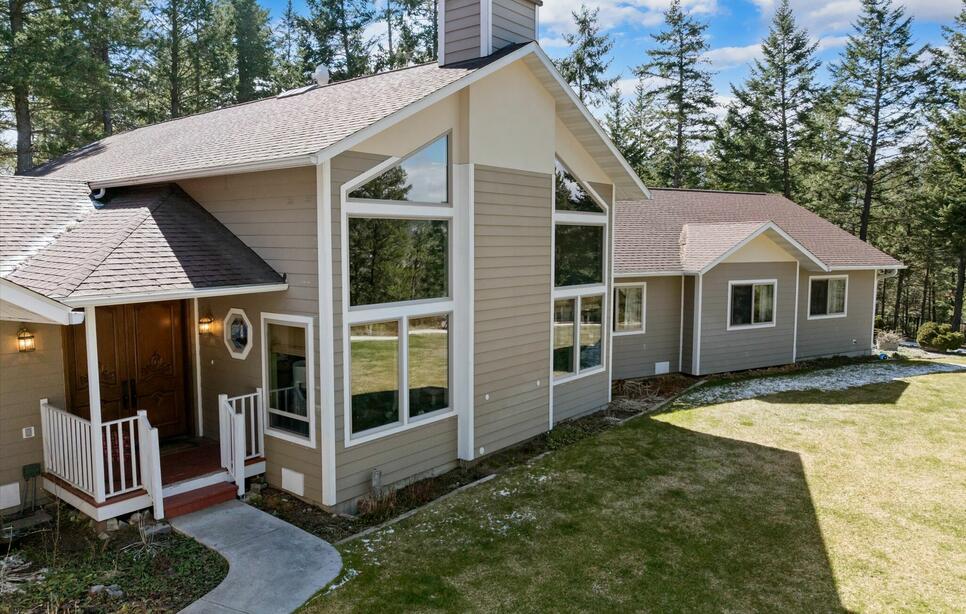 This stunning 4,400 sq ft single-family home on 4 acres offers a perfect blend of luxury and functionality, featuring 3 bedrooms, a spacious den with an expansive window, 3 1/2 ba, vaulted ceilings, a cozy fireplace, and a modern kitchen with stone countertops and an entertainment bar. The luxurious bathrooms boast tiled showers, double vanities, and tile tubs, while the primary suite includes a private ensuite with a jetted tub and shower retreat. Practical amenities such as a dedicated laundry room, two heated garages, and a large heated gym make daily living convenient. Surrounded by beautifully landscaped grounds, this meticulously maintained property provides an ideal sanctuary for both relaxation and active living.