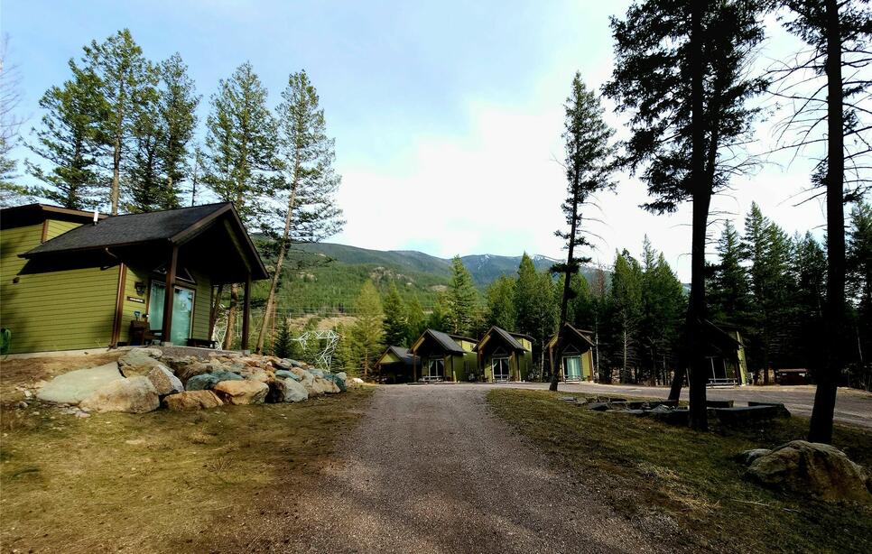 Excellent investment opportunity featuring five rental cabins on 6.92 acres, ideally located along Highway 2. Each of the five cabins is 588 square feet, the main floor features a kitchen, one bedroom, and a 3/4 bathroom, while a spacious loft bedroom provides additional sleeping space. Each cabin sleeps 4–6 guests and comes fully furnished. Just under 20 minutes to the West entrance of Glacier National Park, 30 minutes to Whitefish Mtn Ski Resort, this location offers the perfect blend situated along Hwy 2, easy access to the Hwy, but privacy while nestled in the trees, making it an ideal destination for tourists and outdoor enthusiasts. Guests enjoy easy access to Flathead River, hiking, horseback riding, and all the natural beauty Montana has to offer. This is your chance to own a unique, income-generating retreat in one of the most visited and scenic regions of the state. See "more" information. A separate laundry cabin is 168 square feet and is equipped with coin-operated washer and dryer, enhancing the guest experience and streamlining operations. The cabins are nestled among the trees, providing a peaceful atmosphere for visitors while still offering easy access to nearby attractions. Each cabin has a covered patio with its own chairs, picnic table and BBQ. Parking lot across Hwy 2 offers multi use trails connecting Columbia Falls to National park for easy trail access. These cabins have already proven their income-generating potential, making this property an attractive option for both seasoned investors and those new to the hospitality industry.