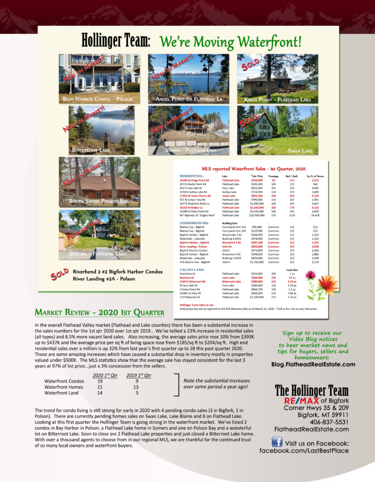 Read over our recent newsletter published in April 2020 covering the sales on NW Montana Lakes in the 1st Quarter of 2020 and an analysis of the quarter.  If you’d like to receive a copy of future newsletters please contact us to be added to the mailing list.