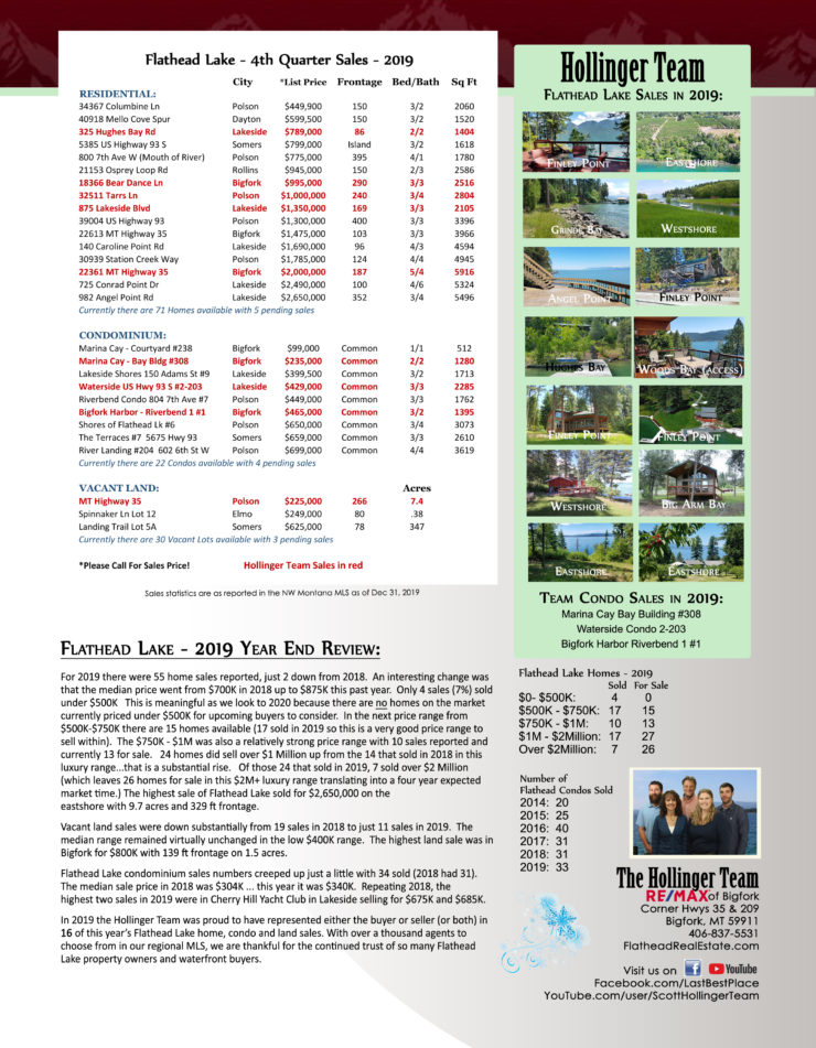 Read over our recent newsletter published in January 2020 covering the sales in the 4th quarter of 2019 on Flathead Lake and an analysis of the year. If you’d like to receive a copy of our newsletter please contact us to be added to the mailing list.