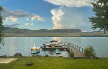 Custom built home in Big Arm Bay with 2 lots totaling 300 ft frontage on 5.83 acres of gently sloping land. Views of Chief Cliff are stunning from the lakefront lawn and expansive covered deck. This home is very open and spacious! Living room area has long hearth with fireplace. The kitchen has granite countertops and island. Dining area opens to deck where you can easily have the grill close by. Primary suite is on the west end with big windows taking in the lake view, walk out to the deck with your morning coffee. East end has two bedrooms, full bath and office w French doors. Walk out the attached dble garage to paved drive and large Shop building with tall doors. Portion of Shop bldg is guest quarters with open studio design and 3/4 bath. Additnl guest areas are the bunkhouse with sink and Caboose car tiny house. Note: Due to recently passed legislation, property tax bills for 2024 and prior years may not reflect the future tax burdens on non-owner-occupied residential properties.