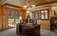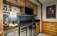 • Log-accented media/entertainment room with wet bar, gas fireplace, and private covered patio access