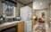 • Cherry cabinetry, solid oak flooring, and custom stained-glass accents throughout