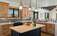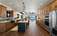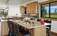 The kitchen is an entertainer's dream furnished with KitchenAid stainless steel appliances, convection microwave, and two ovens. The gas stove and Chipped Maranello granite counters and community island allow the chef to cook and prep, while still being a part of the party. The centerpiece butcher block-treated island is a focal point for prep and ties the wood and stone motif to this space. There are Knotty Alder soft close cabinets and a farm sink for great food storage and prep.