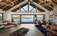 The living room flows directly from the kitchen to huge vaulted tongue and groove ceilings with a stone and wood fireplace. It is the perfect place to cozy up on a cold winter night, or open the second set of accordion doors and blend the interior of the home with the covered outdoor patio. When you open these doors, it truly feels like the home just extended itself to the river and mountains around you.