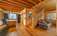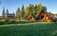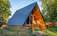 The A-Frame cabins are 18'x24' with a 6' covered porches. Enter the cabin from the porch, open the glass doors to the interior beauty of locally-sourced aspen. The kitchen is well-equipped for all meals and cooking, with built-in cooktop, microwave, toaster, and under-the-counter refrigerator. The living room is spacious and inviting with a large convertible sofa bed (this cabin sleeps a tight 4). A steep ladder leads to a sleeping loft where you can curl up on a wonderfully cozy queen size memory foam mattress and re-energize for your next adventure. Downstairs, there is a small, full bathroom with everything you need to refresh after an adventure in the park. Outside is a full-acre yard. The two cabins are named ElkView and Flattop Mountain. In addition to your own private covered porch and gas grill, there is a shared fire pit and picnic table area, two hammocks, a swing set and a sandbox. Tucked behind the A-frame cabins there is a 6-person hot tub. Plan on an evening dip to enjoy the stars! Don't forget to keep your eyes and ears open for elk- the animals from the ranch next door make frequent visits to the area faced by the cabin.
