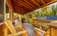 The A-Frame cabins are 18'x24' with a 6' covered porches. Enter the cabin from the porch, open the glass doors to the interior beauty of locally-sourced aspen. The kitchen is well-equipped for all meals and cooking, with built-in cooktop, microwave, toaster, and under-the-counter refrigerator. The living room is spacious and inviting with a large convertible sofa bed (this cabin sleeps a tight 4). A steep ladder leads to a sleeping loft where you can curl up on a wonderfully cozy queen size memory foam mattress and re-energize for your next adventure. Downstairs, there is a small, full bathroom with everything you need to refresh after an adventure in the park. Outside is a full-acre yard. The two cabins are named ElkView and Flattop Mountain. In addition to your own private covered porch and gas grill, there is a shared fire pit and picnic table area, two hammocks, a swing set and a sandbox. Tucked behind the A-frame cabins there is a 6-person hot tub. Plan on an evening dip to enjoy the stars! Don't forget to keep your eyes and ears open for elk- the animals from the ranch next door make frequent visits to the area faced by the cabin.