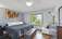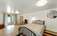 Step inside to an inviting living space featuring vaulted ceilings and expansive lake views, with direct access to the upper-level deck—an ideal setting for relaxing or entertaining. The kitchen and spacious dining area with a cozy fireplace combine timeless charm and modern functionality, including classic white cabinetry, a peninsula, and a breakfast bar—perfect for casual meals or gathering with friends and family. The main level also offers a versatile front entry room that can be used as a home gym, flex space, or creative studio, in addition to a dedicated office, half bath, and a guest suite with an attached private bathroom. The primary suite serves as a peaceful retreat, featuring a beautifully tiled walk-in shower, double vanity, and finishes that blend elegance with practicality. The lower level includes an additional family room, a third bedroom, and a 3/4 bathroom—offering flexible space for guests or extended living.