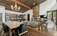 The living room provides a sanctuary of relaxation and style. Vaulted ceilings with exposed beams soar above, creating a sense of grandeur and airiness. The stone fireplace serves as a focal point, inviting you to unwind in front of a crackling fire. Warmth emanates from the rich wood ceiling, adding character and charm to this inviting space. The outdoor living space is designed for both relaxation and entertainment, offering sweeping views of the golf course, lush greenery, and the mountains beyond. Whether you're enjoying a morning coffee, hosting an evening gathering, or simply soaking in the tranquil atmosphere, the deck provides the perfect setting for all occasions.