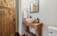 The spacious primary en suite features a walk-in closet, reclaimed barn wood accent wall, dual vanity with a custom knotty alder cabinet, natural stone shower, a separate water closet, and is roughed in for a luxurious soaker tub (under tile) .