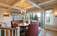 The home features five bedrooms and four full and one half bathrooms, including a primary suite with a spa bath and custom glass steam shower. Interiors boast mountain ash hardwood floors, custom cabinetry, a hidden wine storage area, and two full laundry spaces. The expansive great room anchors the home with a wood-burning gas-assisted fireplace and seamless access to the screened porch for seasonal living.