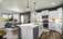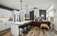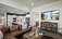 Inside, natural light and thoughtful design define the home. The open-concept living area features high vaulted ceilings and a stacked-rock fireplace as the focal point. Expansive windows frame stunning mountain views from both the living and dining rooms, while high-quality vinyl plank flooring adds warmth and durability throughout. The kitchen is equally impressive, showcasing crisp white cabinetry, quartz countertops, stainless steel appliances, and a fabulous gas range, perfect for cooking, entertaining, or simply gathering at the heart of the home.