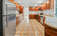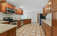 The kitchen provides generous storage and a functional layout, with an adjacent area that can easily serve as a formal dining room, den, or additional living space.