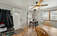 located upstairs, accessed by a unique wooden spiral staircase that adds character and charm. The