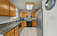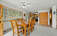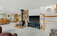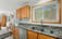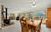 The main living area features a warm, inviting feel with a wood stove and stone surround, while large windows bring in natural light and frame the shoreline. The kitchen is well-appointed with granite countertops, ample cabinetry, and an open connection to the dining area—perfect for gathering after a day on the lake. Multiple decks and outdoor spaces provide seamless indoor-outdoor living for relaxing or entertaining.