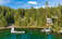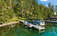 Wake up to expansive lake views from the upper level with access to a private deck overlooking the dock and shoreline. Mature trees provide privacy and a classic Montana lake setting, complemented by a gentle approach to the water.