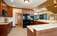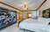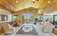 This generously sized home features spacious living areas and thoughtful interior touches throughout. The main living room showcases vaulted, wood-paneled ceilings and expansive windows that frame breathtaking views of the mountains and fairways. A secondary living room offers a cozy retreat with a fireplace and crown molding, adding warmth and character. The kitchen is ideal for gathering and entertaining, featuring a double oven, stovetop, walk-in pantry, and crown molding that enhances the space’s inviting feel. Also on the main level, you’ll find the primary bedroom with an ensuite bath and walk-in closet. This ensuite offers a relaxing retreat with a double vanity, walk-in shower, and jetted tub. An additional bedroom, full bathroom, and a versatile den complete the main floor.