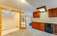The daylight walk-out lower level includes two spacious bedrooms, a large family room with a wet bar, a bonus room, and a dedicated golf cart garage, that could also be used for a home gym, studio, or flex space, along with the mechanical room.